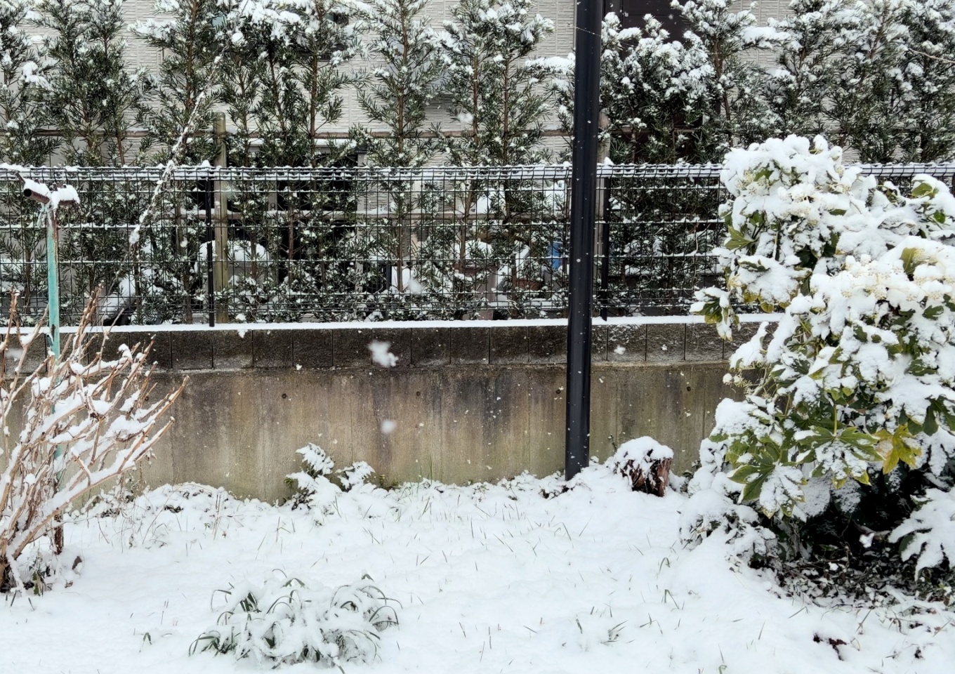 ・今年は2月8日になって雪が降り庭は少し雪で埋まりました(写真)が、夕方には少し残っただけでした。